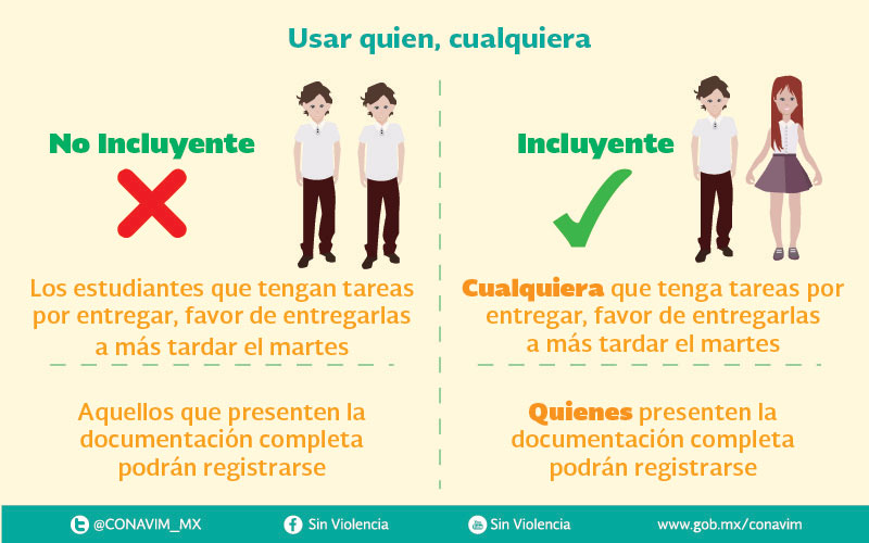 - Evita las palabras que excluyan o invisibilicen a mujeres y otras identidades de género.